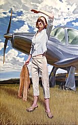 The first painting is dubbed Born With Wings, and since I didn't take any art classes anywhere, I don't know what to say about it. It's just good work. Somehow, it manages to suggest confidence or something. I'd be happy to hang the thing in the house I've got planned for when I'm a Rich Lawyer. Maybe it's something to do with liking aviation.